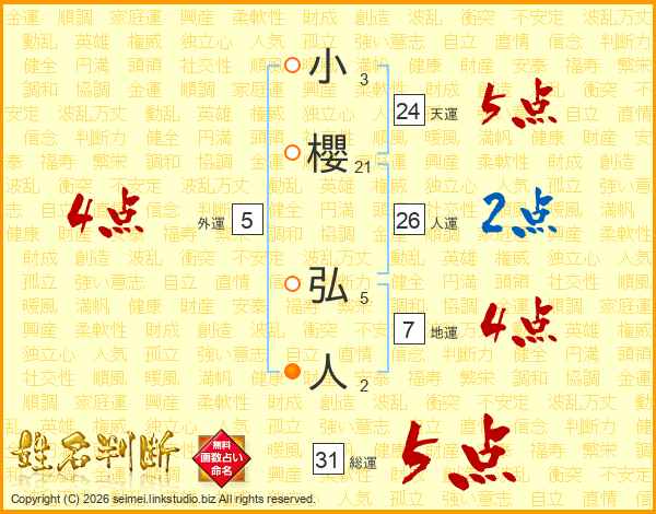 小(3画)櫻(21画) 弘(5画)人(2画)