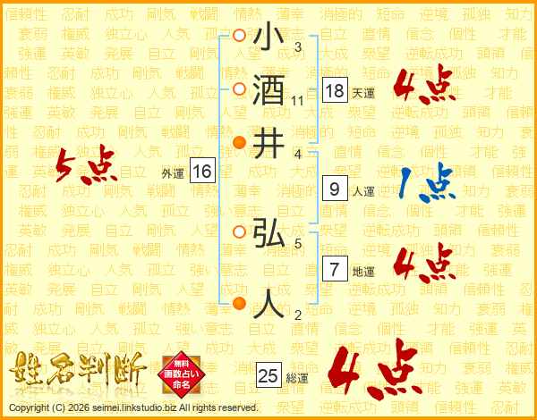 小酒井弘人さんの総運は25画の4点!