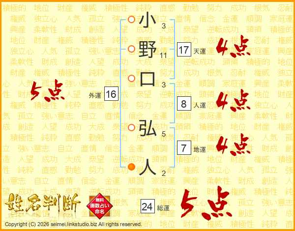 小(3画)野(11画)口(3画) 弘(5画)人(2画)