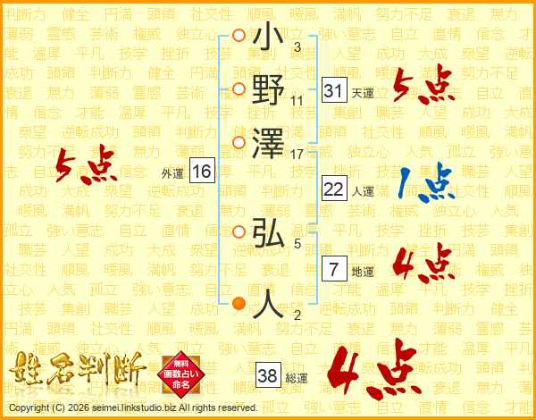 小野澤弘人さんの総運は38画の4点!