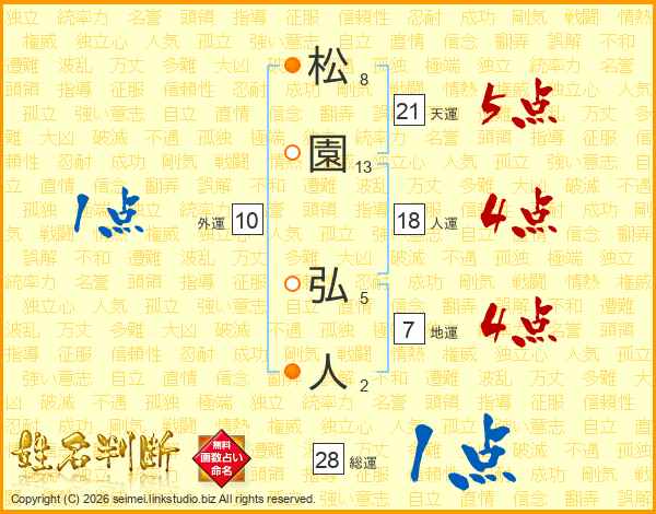 松(8画)園(13画) 弘(5画)人(2画)