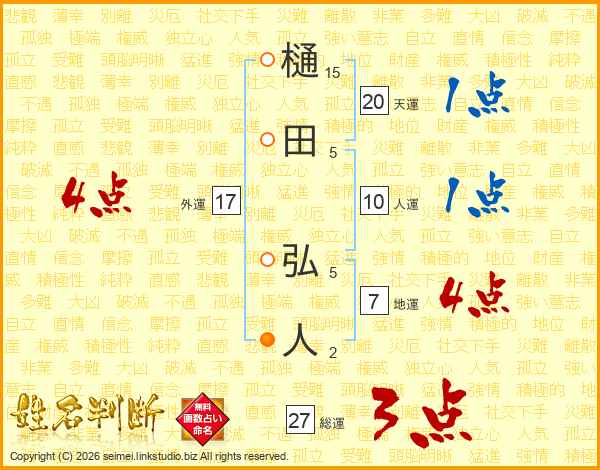 樋田弘人さんの地運は7画の4点!