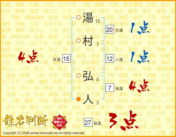 湯村弘人さんの総運は27画の3点!