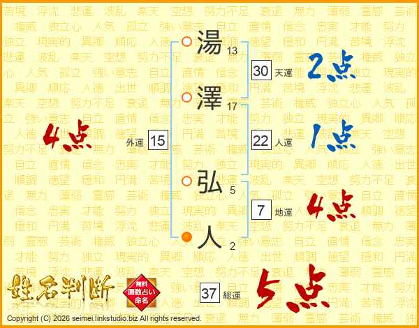 湯澤弘人さんの総運は37画の5点!