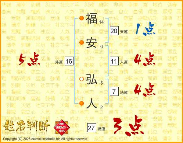 福(14画)安(6画) 弘(5画)人(2画)