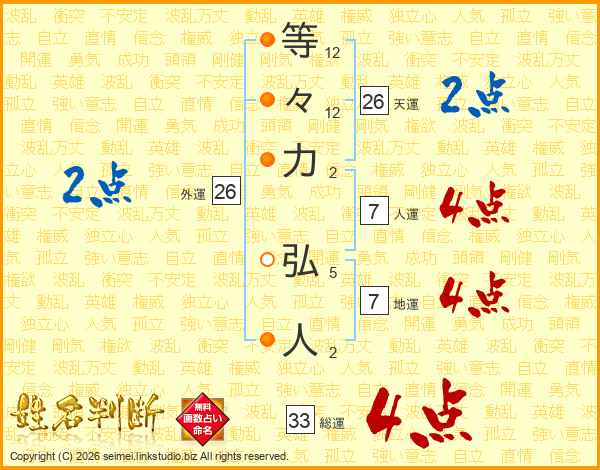 等々力弘人さんの天運は26画の2点!