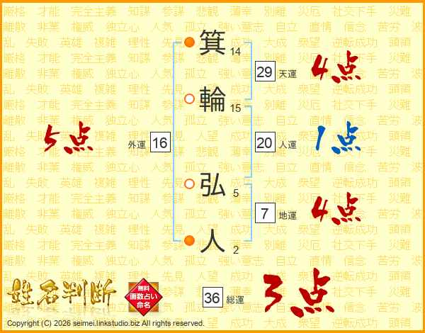 箕(14画)輪(15画) 弘(5画)人(2画)