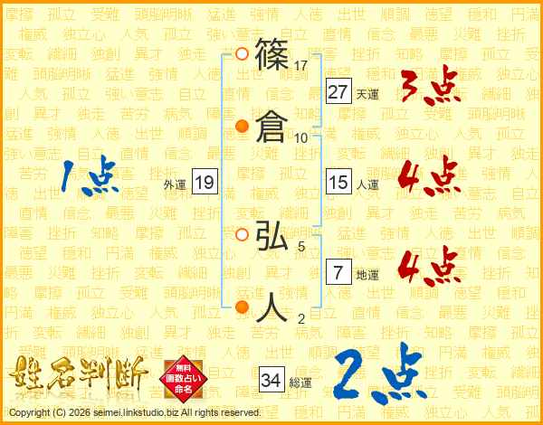 篠(17画)倉(10画) 弘(5画)人(2画)