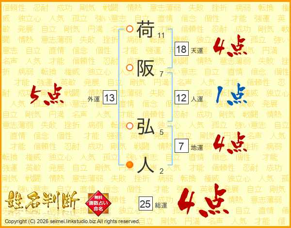 荷阪弘人さんの総運は25画の4点!