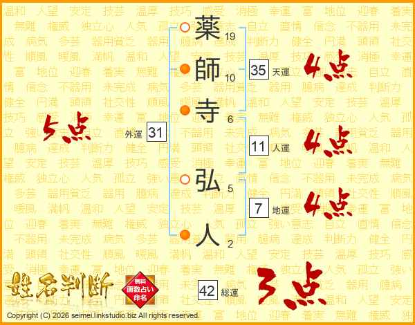 薬師寺弘人さんの外運は31画の5点!