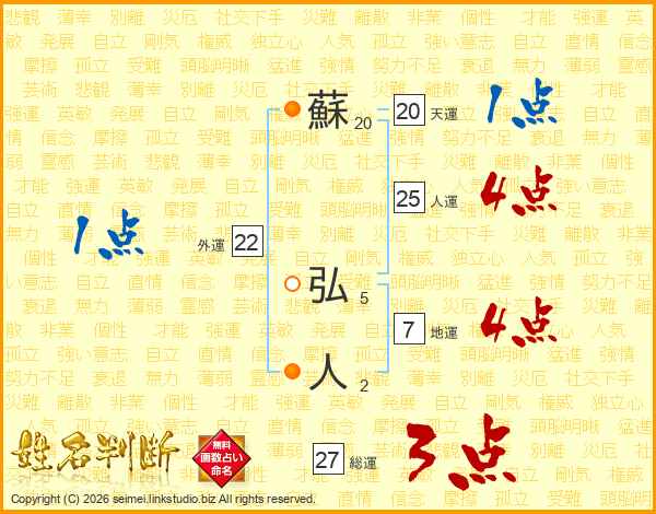蘇弘人さんの総運は27画の3点!