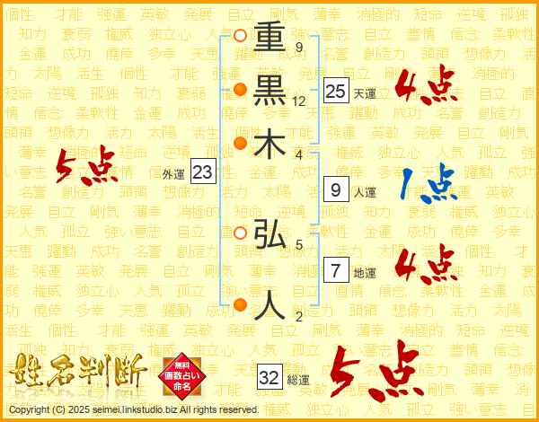重(9画)黒(12画)木(4画) 弘(5画)人(2画)
