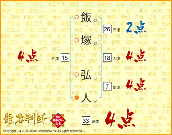 飯塚弘人さんの総運は33画の4点!