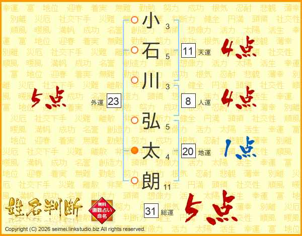 小石川弘太朗さんの総運は31画の5点!