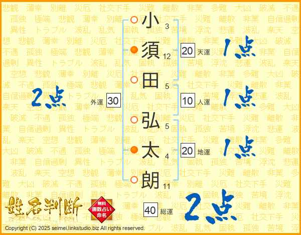 小(3画)須(12画)田(5画) 弘(5画)太(4画)朗(11画)