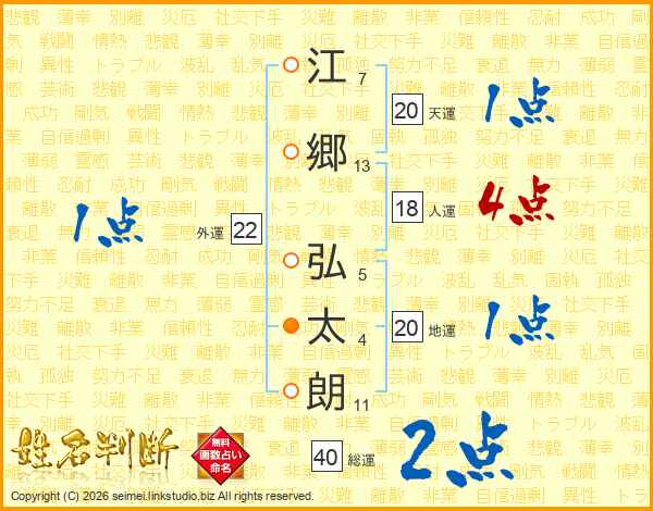江(7画)郷(13画) 弘(5画)太(4画)朗(11画)