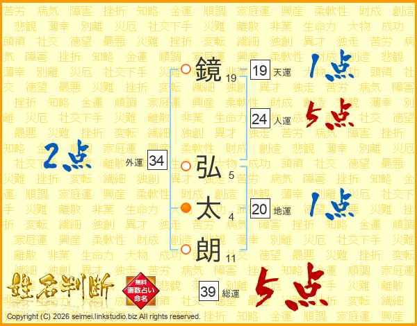 鏡弘太朗さんの総運は39画の5点!