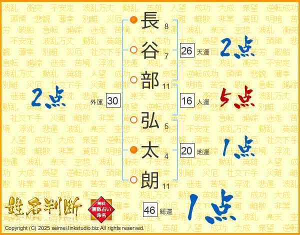 長谷部弘太朗さんの総運は46画の1点!