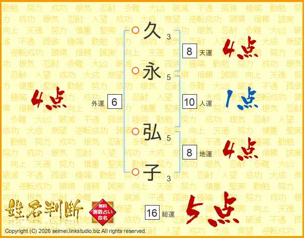 久永弘子さんの総運は16画の5点!