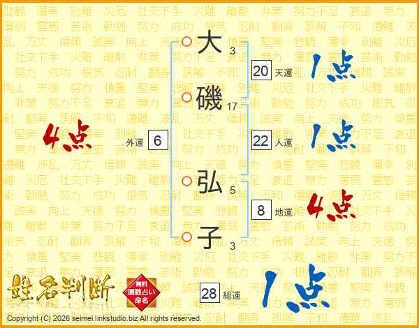 大磯弘子さんの天運は20画の1点!