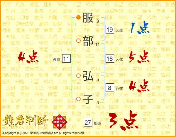 服部弘子さんの総運は27画の3点!