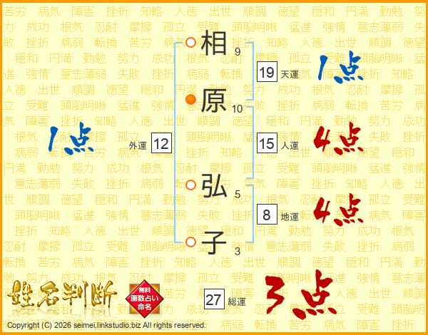 相原弘子さんの総運は27画の3点!