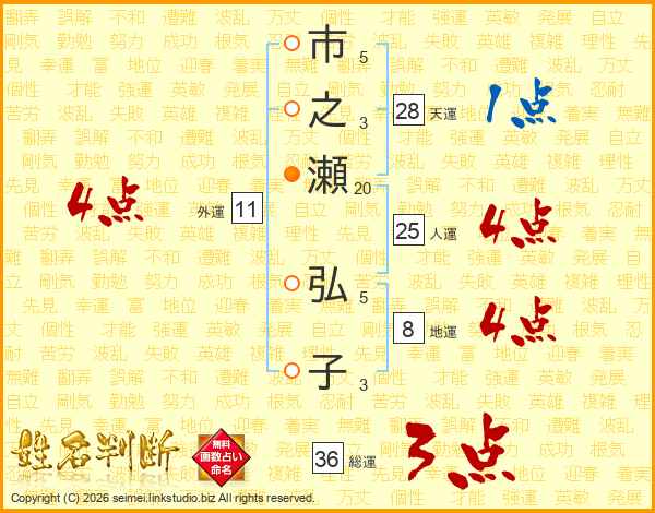 市之瀬弘子さんの総運は36画の3点!
