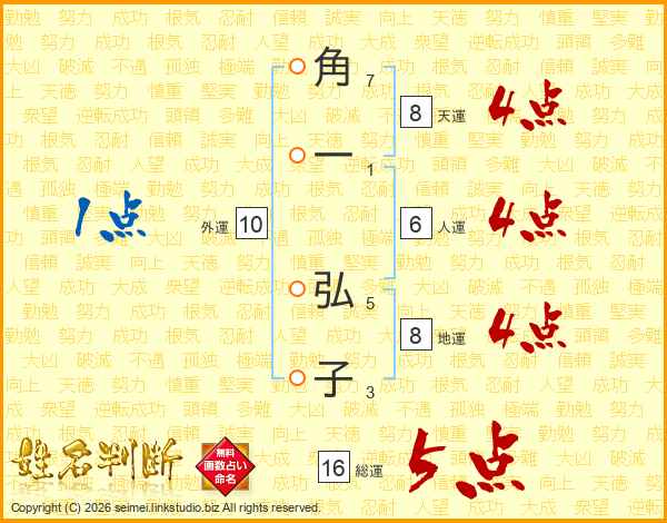 角(7画)一(1画) 弘(5画)子(3画)