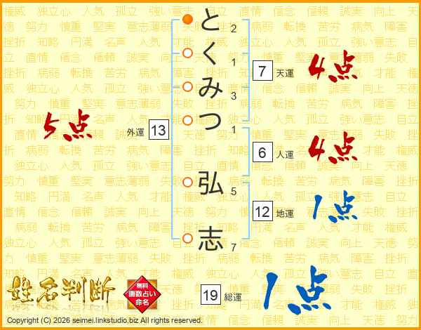 とくみつ弘志さんの天運は7画の4点!