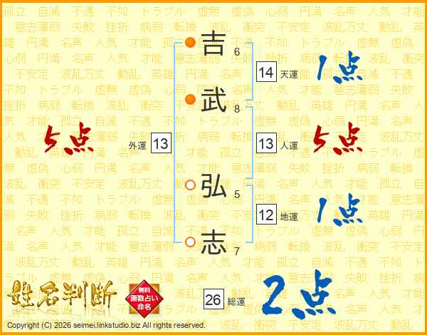 吉(6画)武(8画) 弘(5画)志(7画)