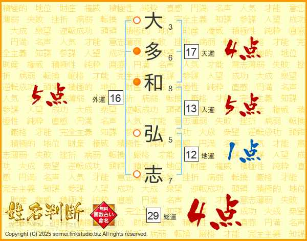 大(3画)多(6画)和(8画) 弘(5画)志(7画)
