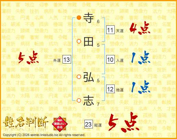 寺(6画)田(5画) 弘(5画)志(7画)