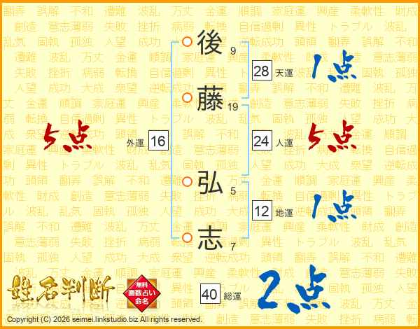 後藤弘志さんの人運は24画の5点!