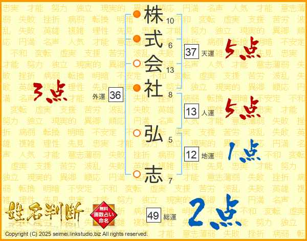 株式会社弘志さんの天運は37画の5点!