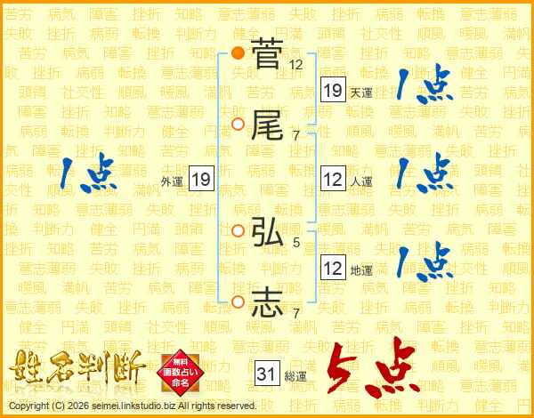 菅尾弘志さんの総運は31画の5点!