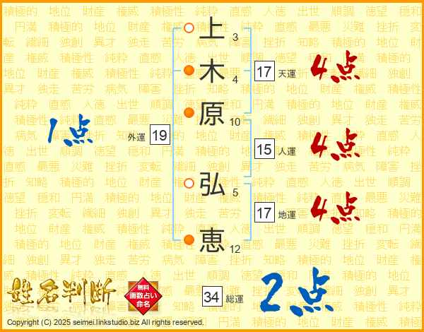 上(3画)木(4画)原(10画) 弘(5画)恵(12画)