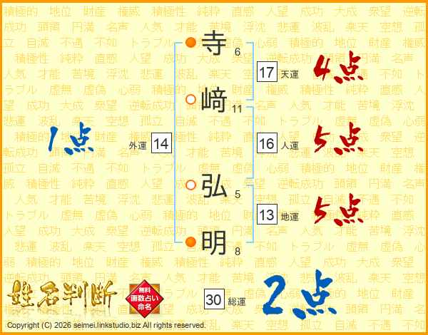 寺(6画)﨑(11画) 弘(5画)明(8画)