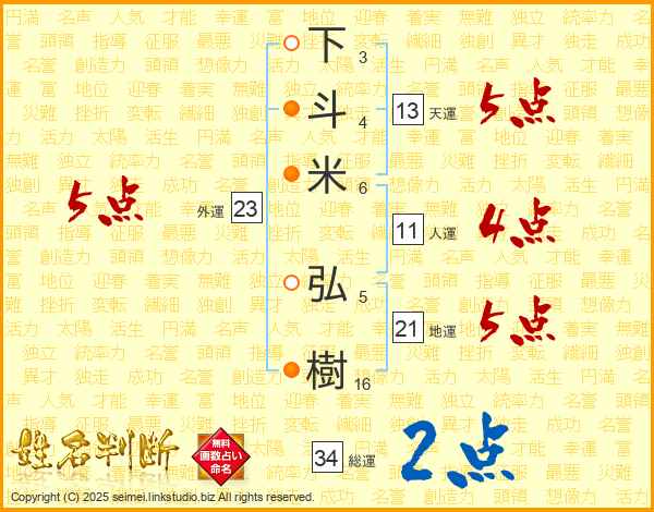 下(3画)斗(4画)米(6画) 弘(5画)樹(16画)