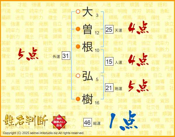大曽根弘樹さんの総運は46画の1点!