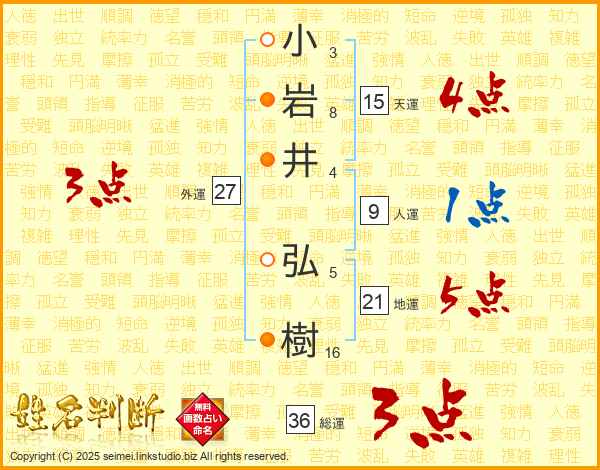 小岩井弘樹さんの総運は36画の3点!