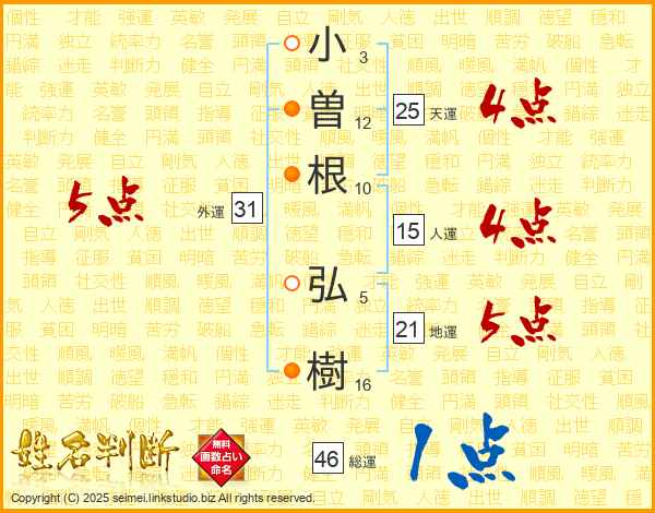 小(3画)曽(12画)根(10画) 弘(5画)樹(16画)
