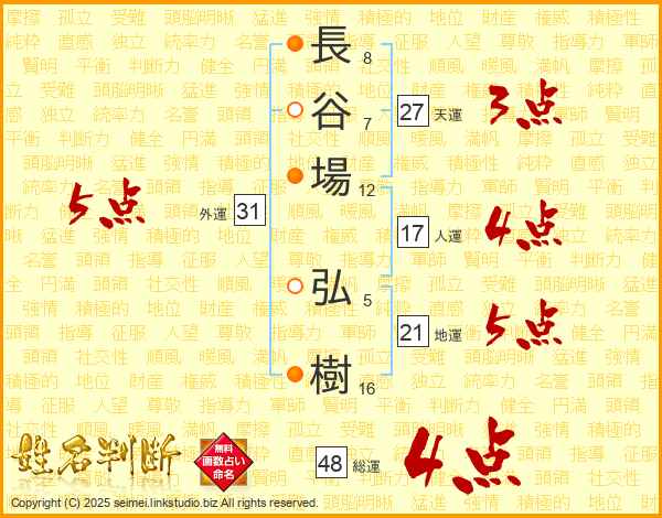長谷場弘樹さんの総運は48画の4点!
