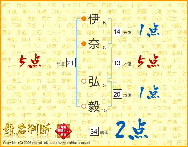 伊奈弘毅さんの人運は13画の5点!