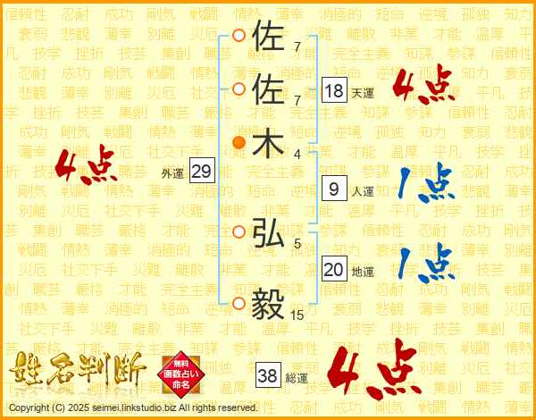 佐(7画)佐(7画)木(4画) 弘(5画)毅(15画)