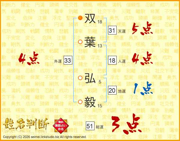 双(18画)葉(13画) 弘(5画)毅(15画)