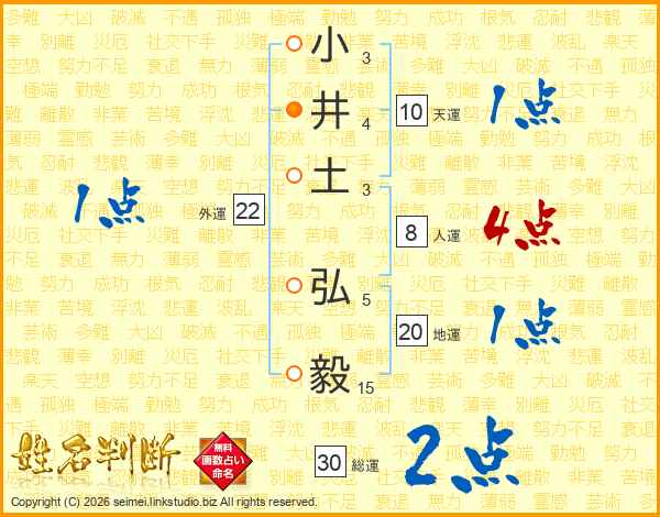 小(3画)井(4画)土(3画) 弘(5画)毅(15画)