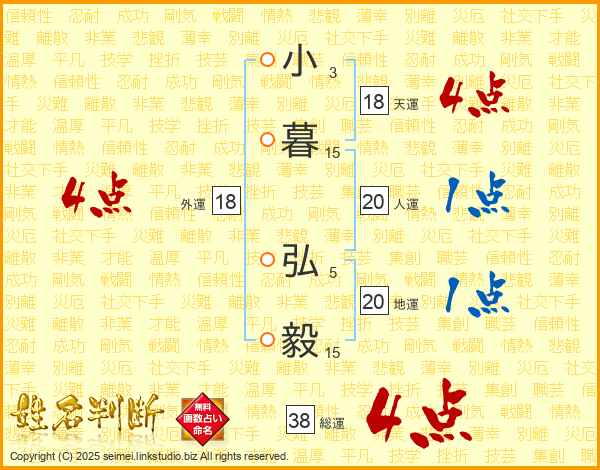 小(3画)暮(15画) 弘(5画)毅(15画)