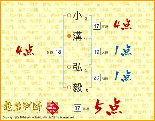 小溝弘毅さんの総運は37画の5点!