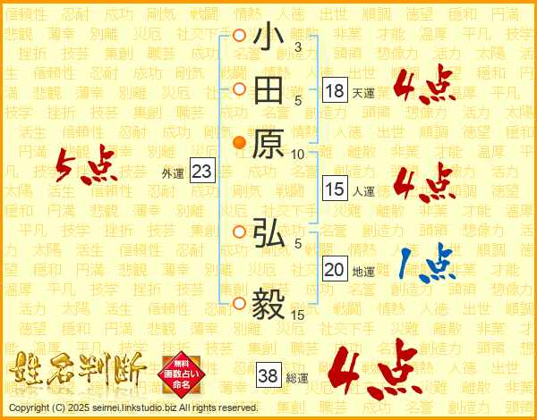 小田原弘毅さんの総運は38画の4点!