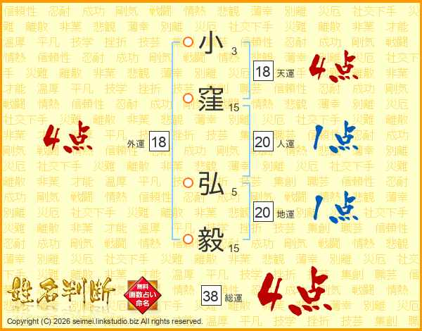 小窪弘毅さんの総運は38画の4点!